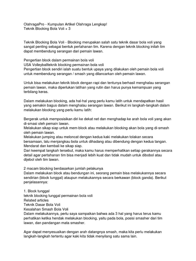 for "Gerakan Kombinasi Blok Pada Voli - Teknik Dasar Bola Voli Sejarah Peraturan Ukuran Wasit"